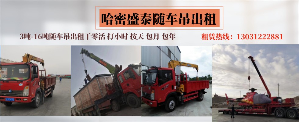 以上内容来自哈密随车吊出租公司小编为你整理,哈密盛泰工程机械租赁有限公司长期提供哈密叉车出租,吊车出租,随车吊出租,吊车租赁,设备搬运等服务,哈密附近吊车租赁电话,吊车规格全性能好,吊装经验丰富,价格合理,欢迎电话咨询